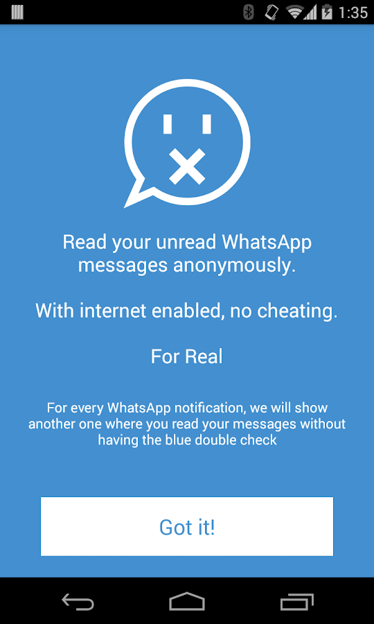 بعدها تظغط على got it حتى تفعل خاصية التطبيق على الواتساب و بعد إرسال رسالة تأتيك كما موضح في الصورة الثانية لقراءتها حتى دون الدخول على الواتساب