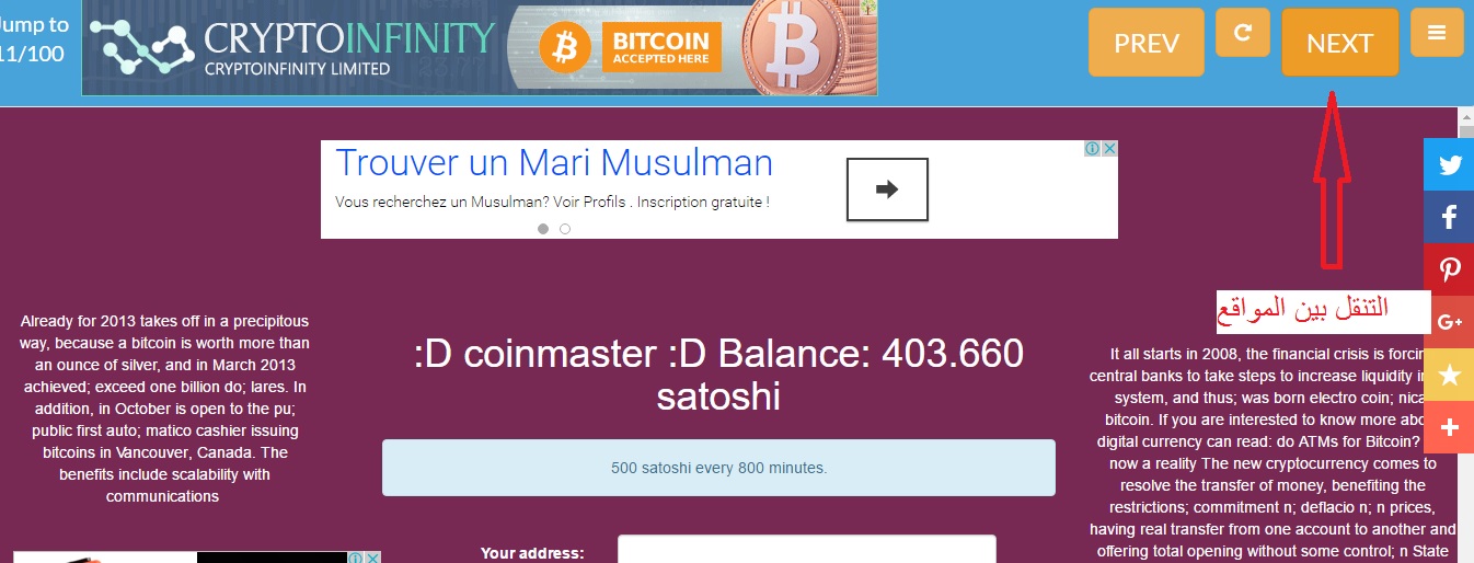 - فقط انتبه الى balance ان كانت فارغة او لا تمتلك الساتوشي تخطى الموقع واتجه الى موقع اخر, سوف يُعيد تحديثها من قبل المشرفين و الا ننزعها من القائمة